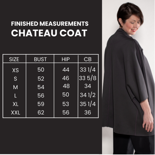 The finished measurement chart is attached as a screenshot for your reference. It’s on the event page as well as alt images on the pattern and kit descriptions. It’s on the event page at www.sewingonline.sulky.com as well as alternate images on the pattern and kit descriptions. If you've registered for the event it will be in your "My Library" there.